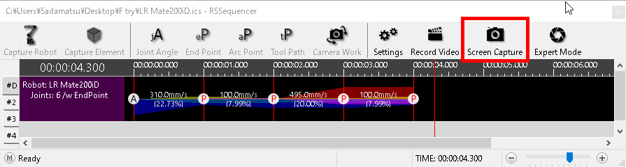 シミュレーションの指定時間位置でIRONCAD画面をキャプチャすることができます。
